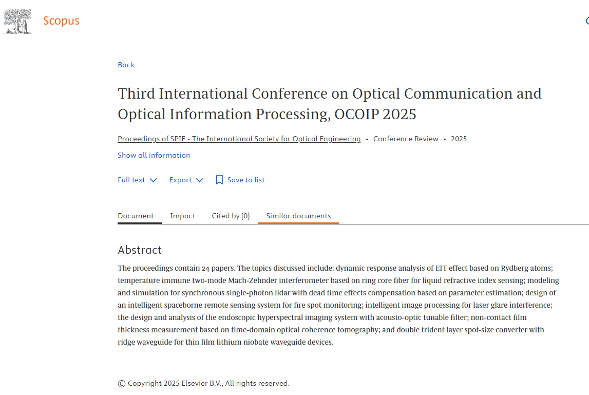OCOIP2025 conference proceedings have been included in SPIE digital library! Publication link.2025-12-11